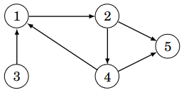 Solmusta \(1\) on \(1\) polku solmuun \(3\) ja solmusta \(5\) on \(2\) polkua solmuun \(3\), joten polkuja solmusta \(4\) solmuun \(3\) on yhteensä \(1+2=3\).