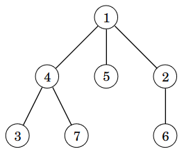 tree = Node(1, [Node(4, [Node(3), Node(7)]),